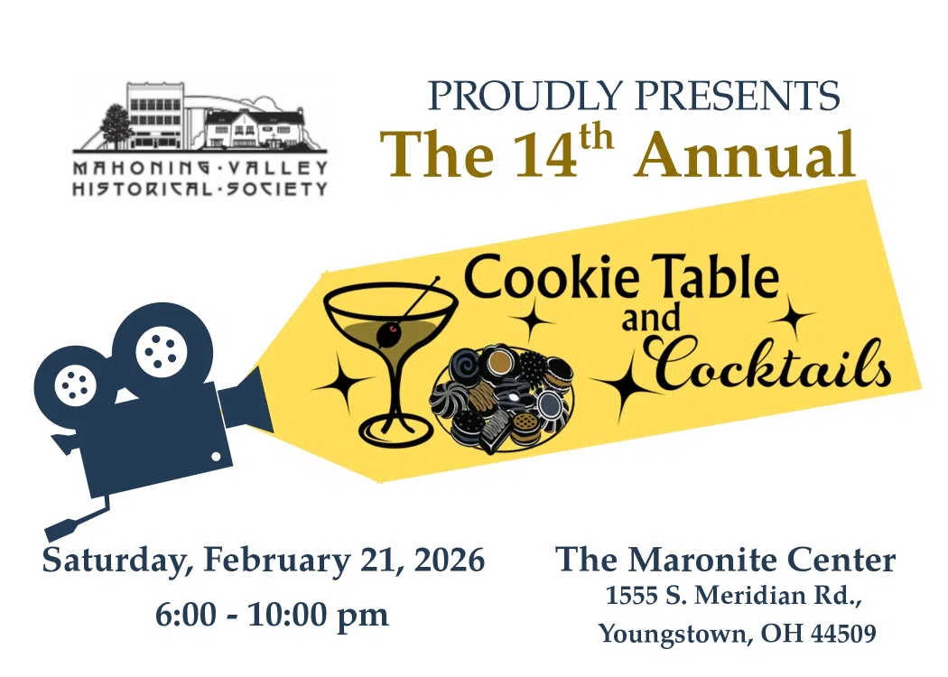Cookie Table and Cocktails, the signature fundraising event for Mahoning Valley Historical Society, was created to pay tribute to this beloved custom. Now in its 14th year, Cookie Table and Cocktails has become the “can’t miss” event of the season. The February 2025 event sold out, with well over 400 cookie aficionados in attendance. Cookie Table & Cocktails is a party with a purpose – funds raised support the preservation of our collective history. To accommodate more guests, we moved the event to The Maronite Center on Meridian Road, and expect a sellout crowd of 475. Cookie Table & Cocktails will be held on Saturday, February 21, 2026. The fun and festive wedding reception atmosphere includes lively music by the Zolka Brothers, a “Youngstown buffet”, and silent and basket auctions. The star of the show, though, is the amazing cookie table. Featuring thousands of delectable cookies created by 95 local amateur and professional bakers, this magnificent display is the highlight of the evening.