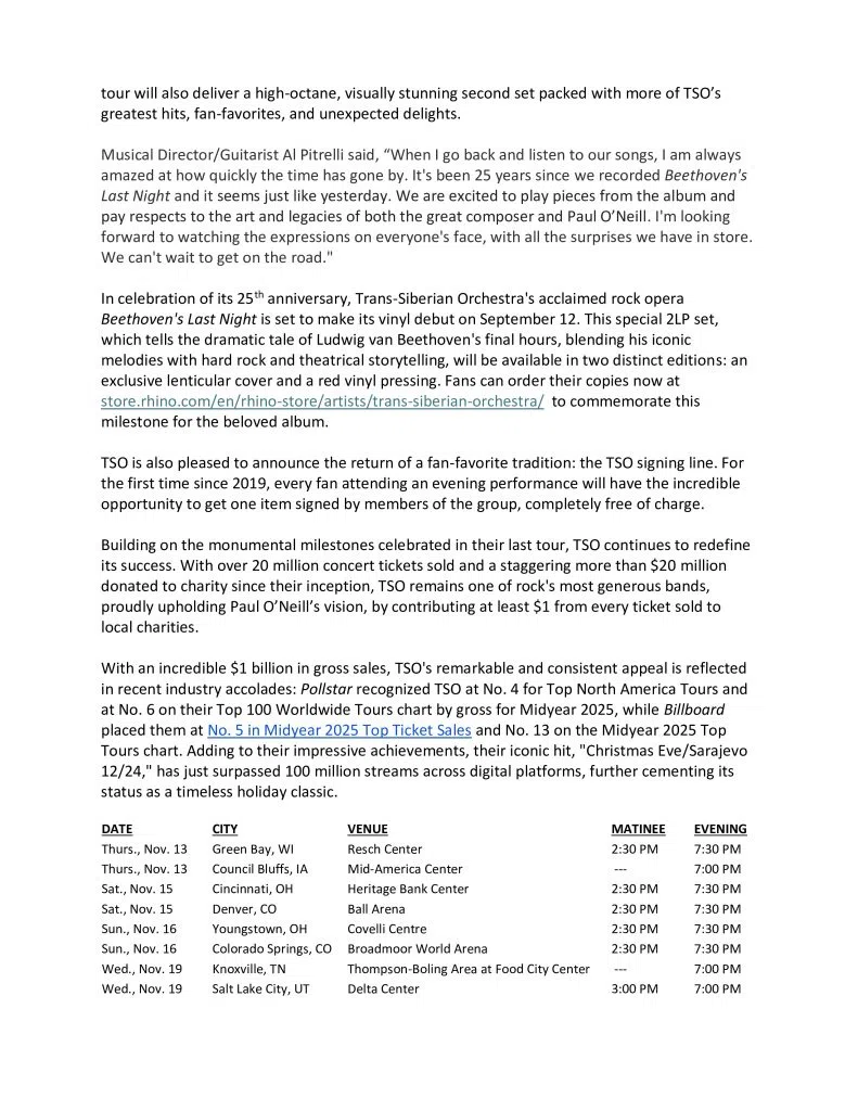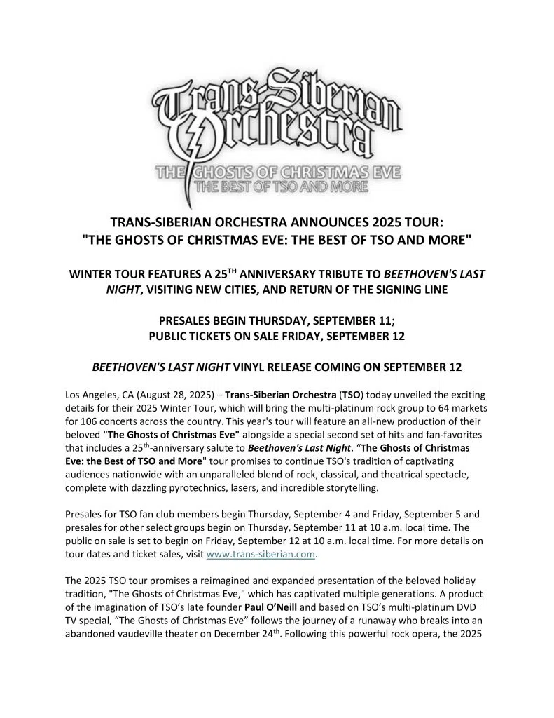 TRANS-SIBERIAN ORCHESTRA ANNOUNCES 2025 TOUR